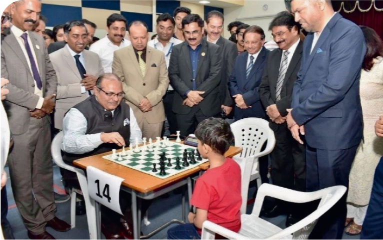 As part of inauguration ceremony of the Indian School Bahrain Community Sports Fest-2023, the Indian Ambassador, Shri Piyush Srivastava inaugurated the Chaturanga Chess Tournament organized in association with Arjuna’s Chess Academy. One of our student, Nyrav Gopalakrishnan, of Grade 2-D got the privilege of playing the opening game of chess with the honourable Ambassador.